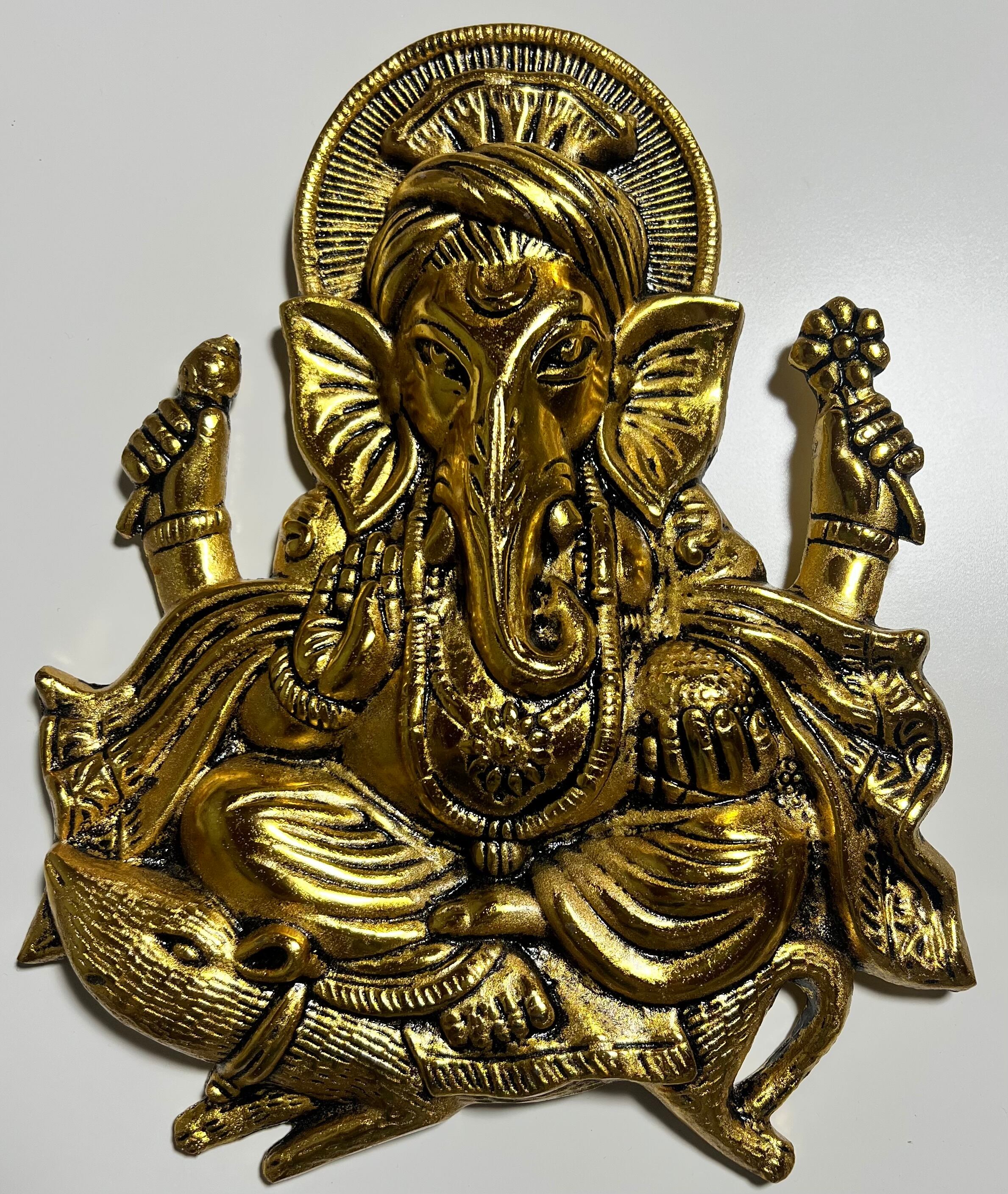 インドから直接仕入れた真鍮製のガネーシャ神全身像の壁飾りになります。