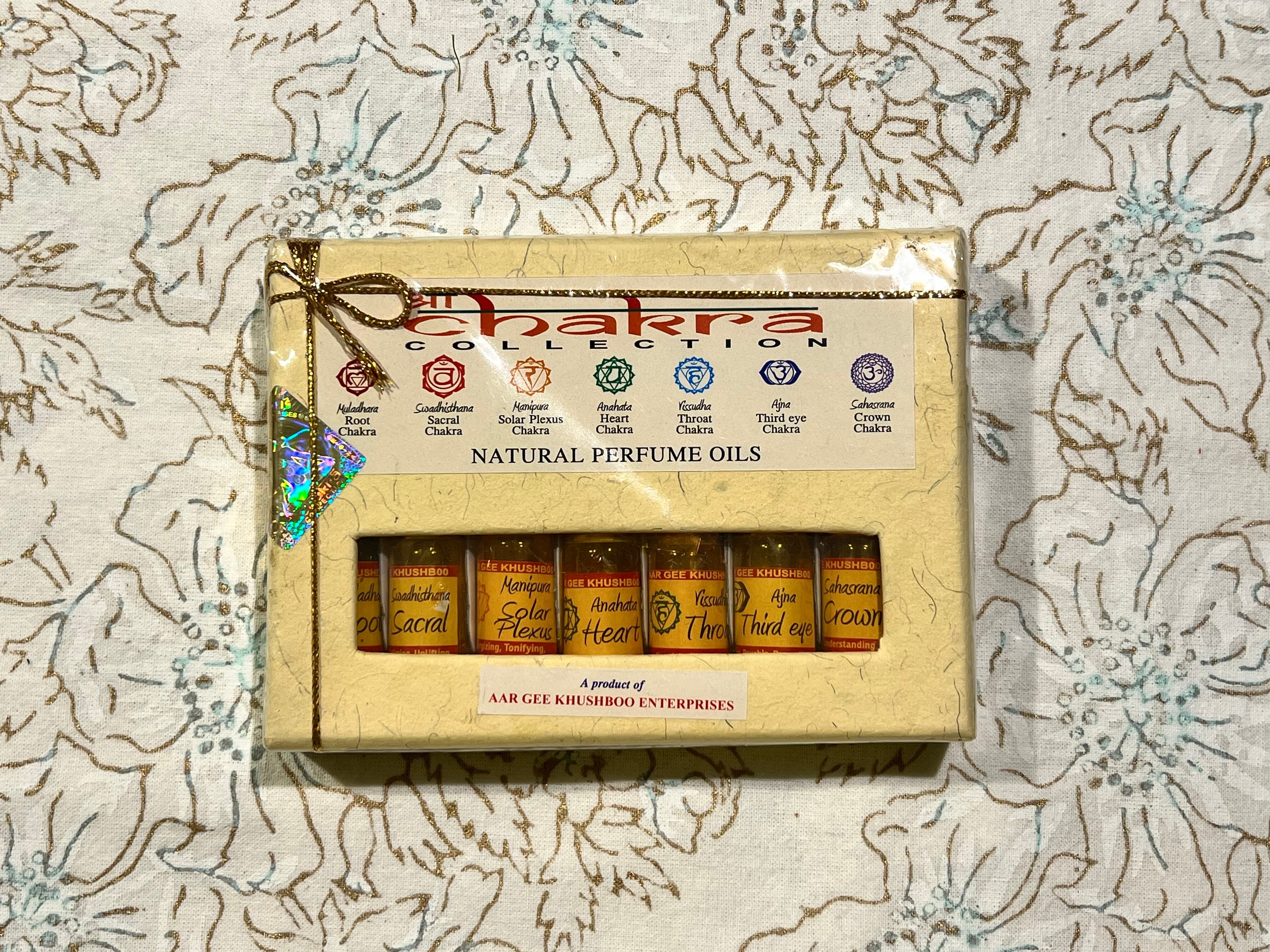 チャクラをテーマにブレンドされたフレグランスオイルブレンドの7本入りキットです。