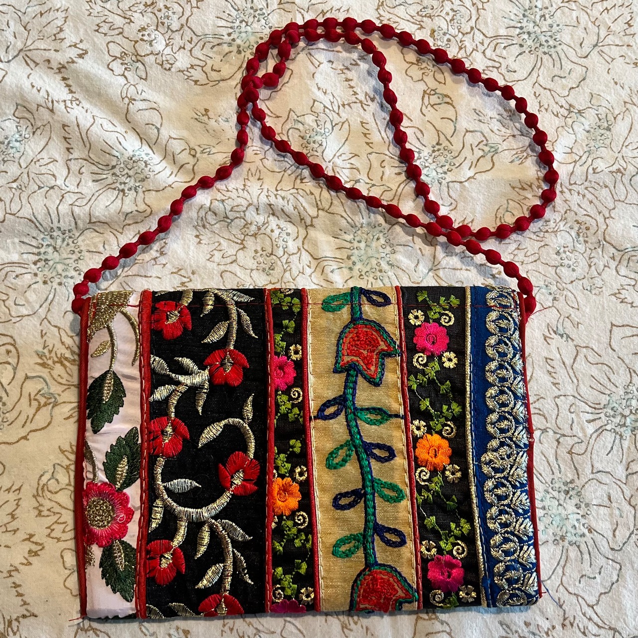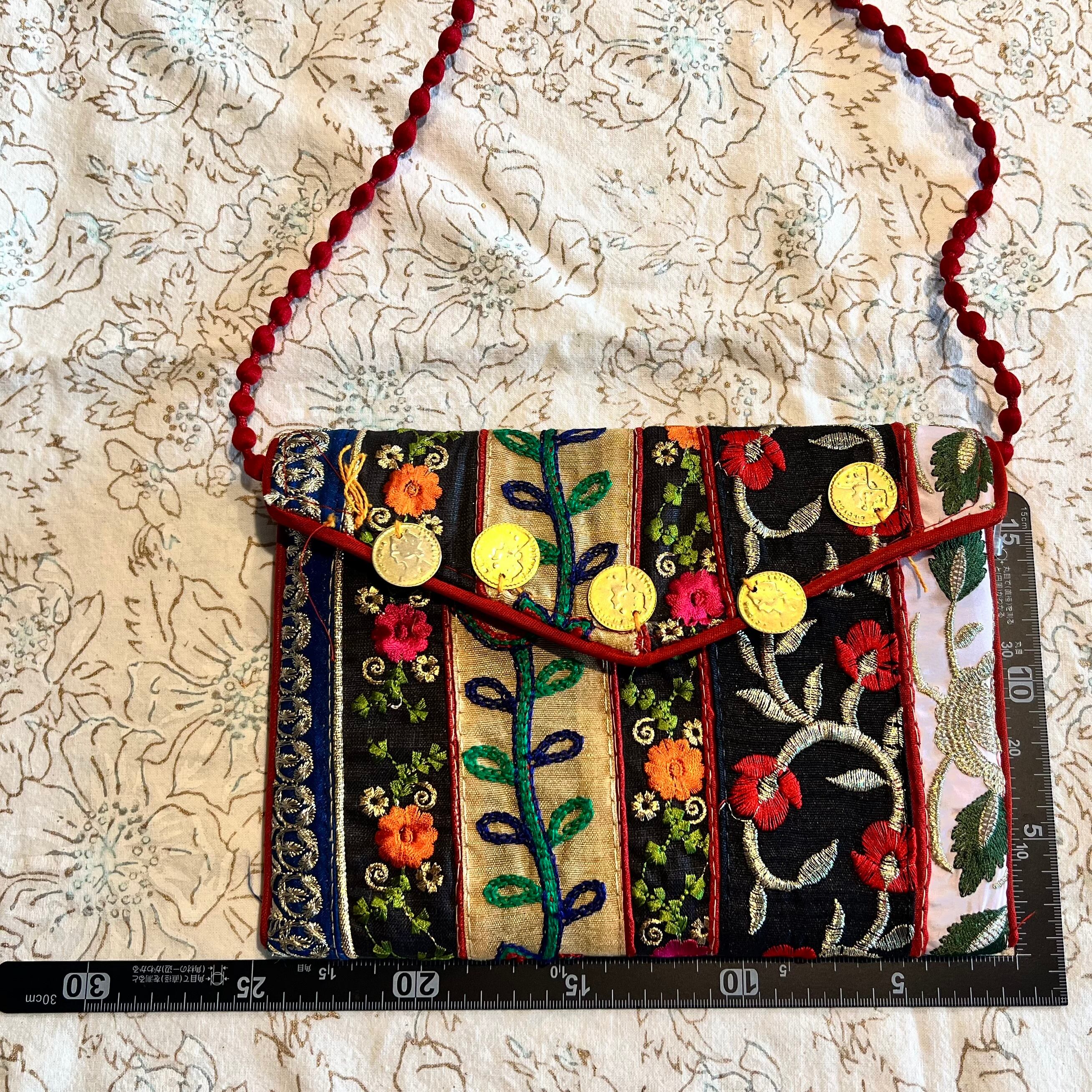 こちらはインドから直接買い付けてきた可愛いショルダーバッグにも、クラッチバッグにも使えるバッグです。