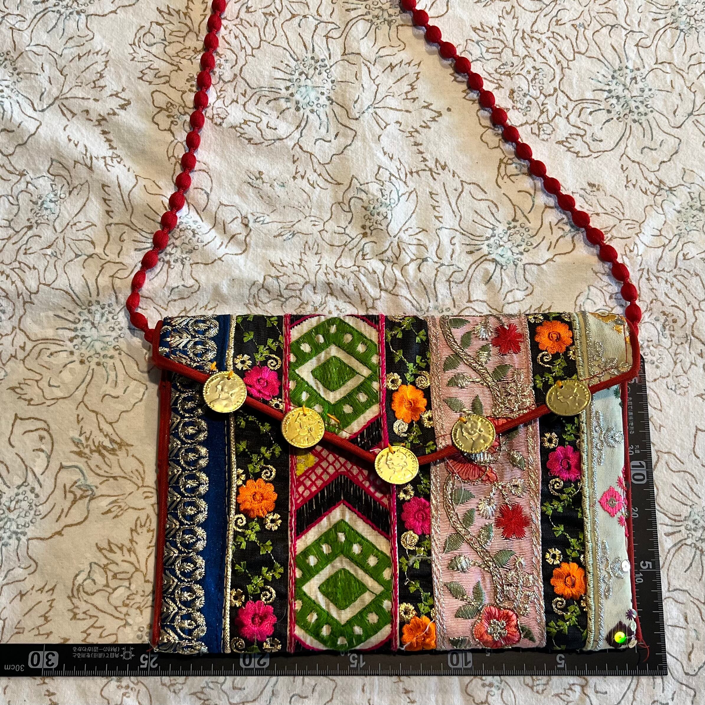 こちらはインドから直接買い付けてきた可愛いショルダーバッグにも、クラッチバッグにも使えるバッグです。
