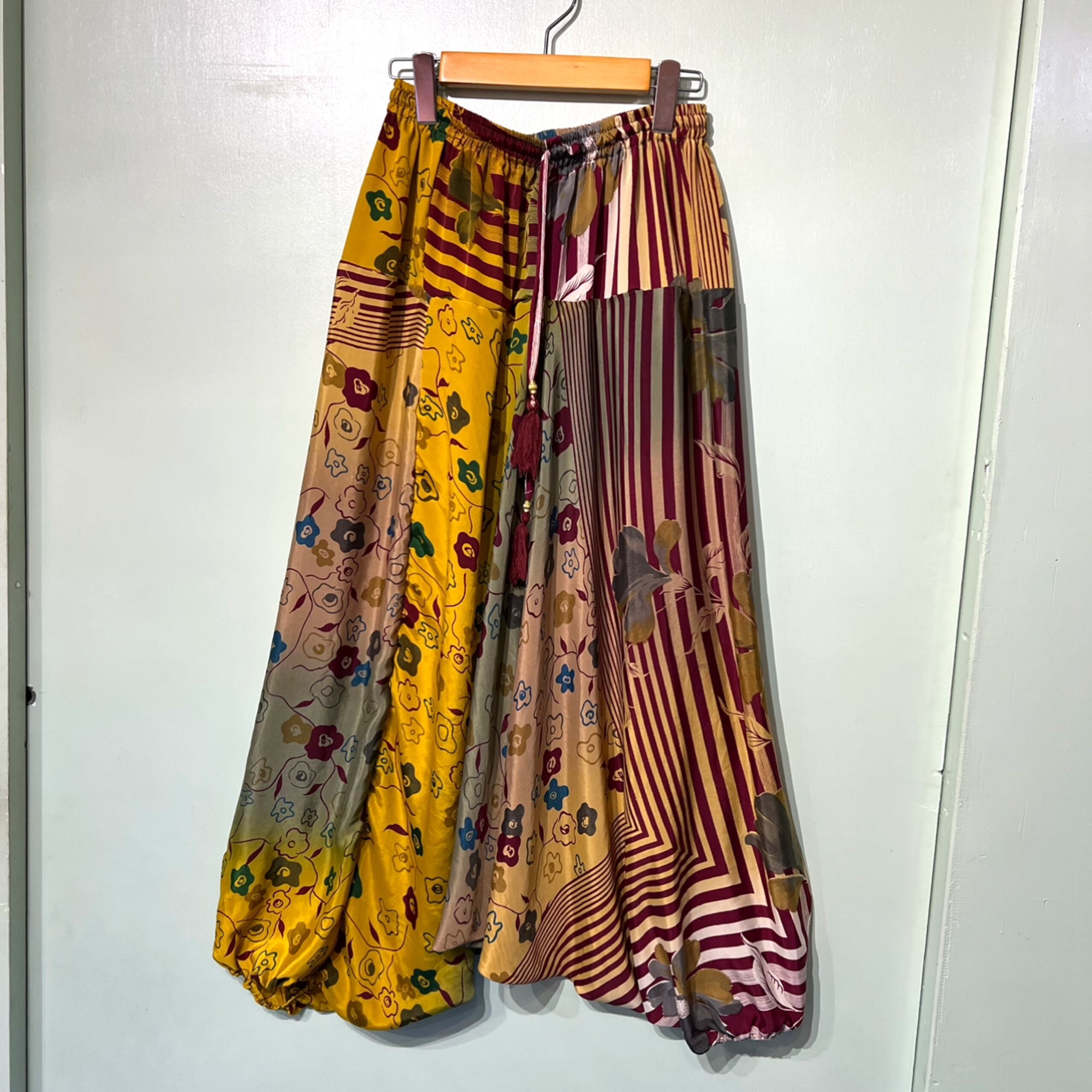 こちらはサルエルパンツでインドのサリーの生地を使い
