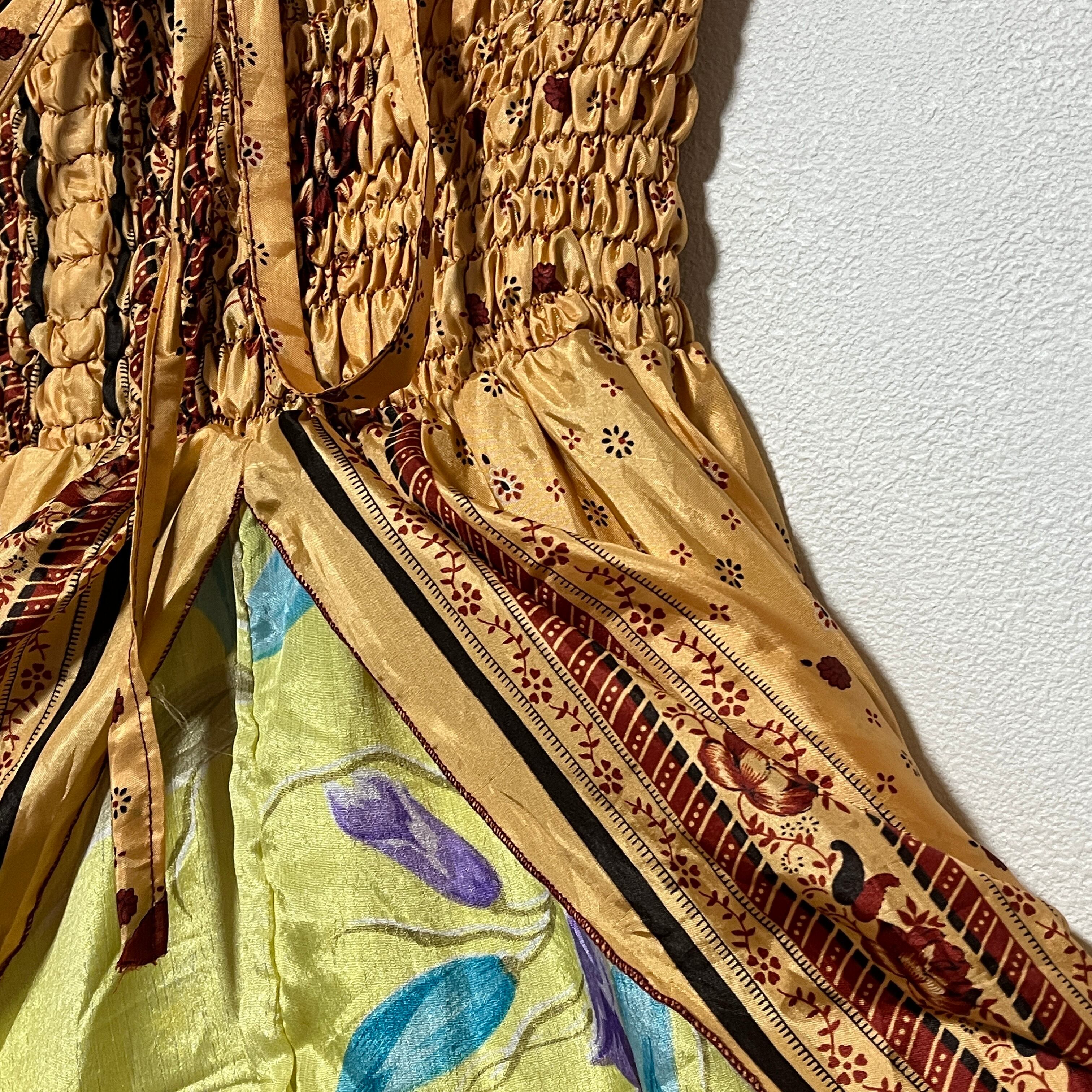 ☆インドサリーのアップサイクル商品となっておりますのでシルクやポリエステル等の生地が混在しております。